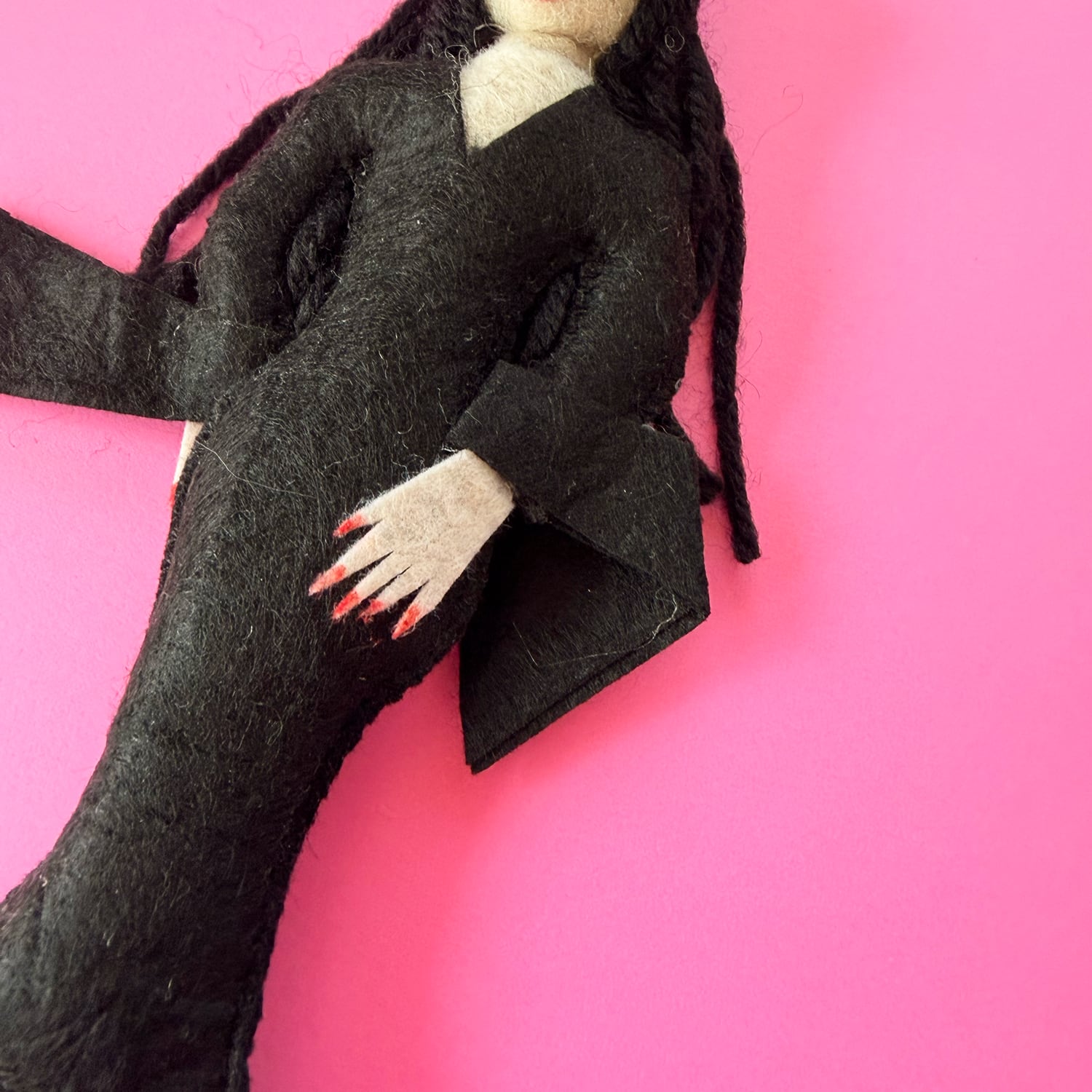 ウールのフェルトを使用しており、手縫いと刺繍であたたかさを感じるアイテム。