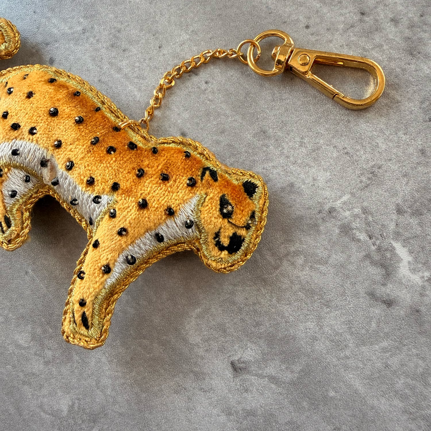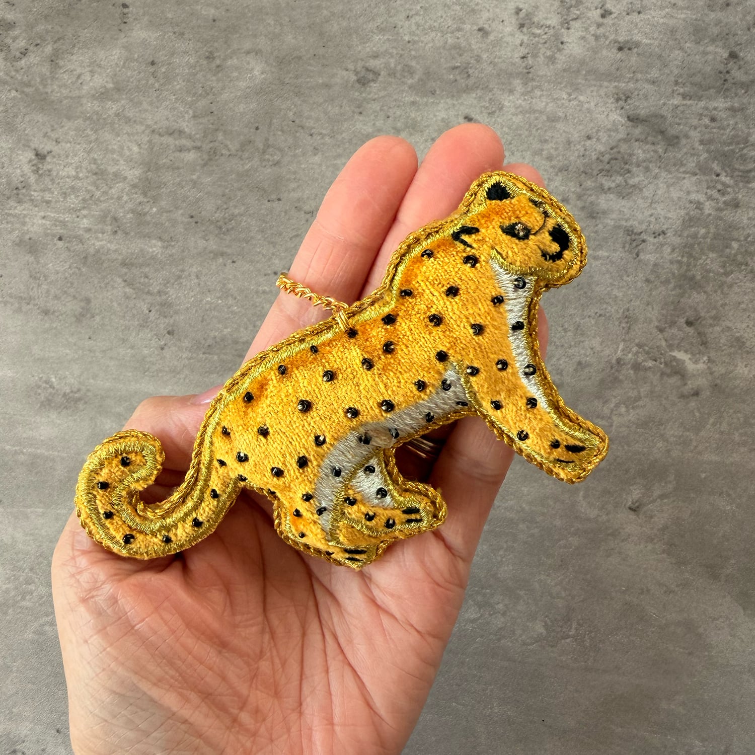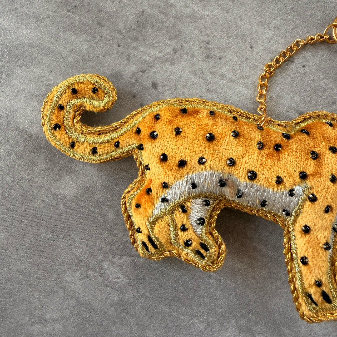 レオパードをモチーフにしたザリ刺繍のチャームです。