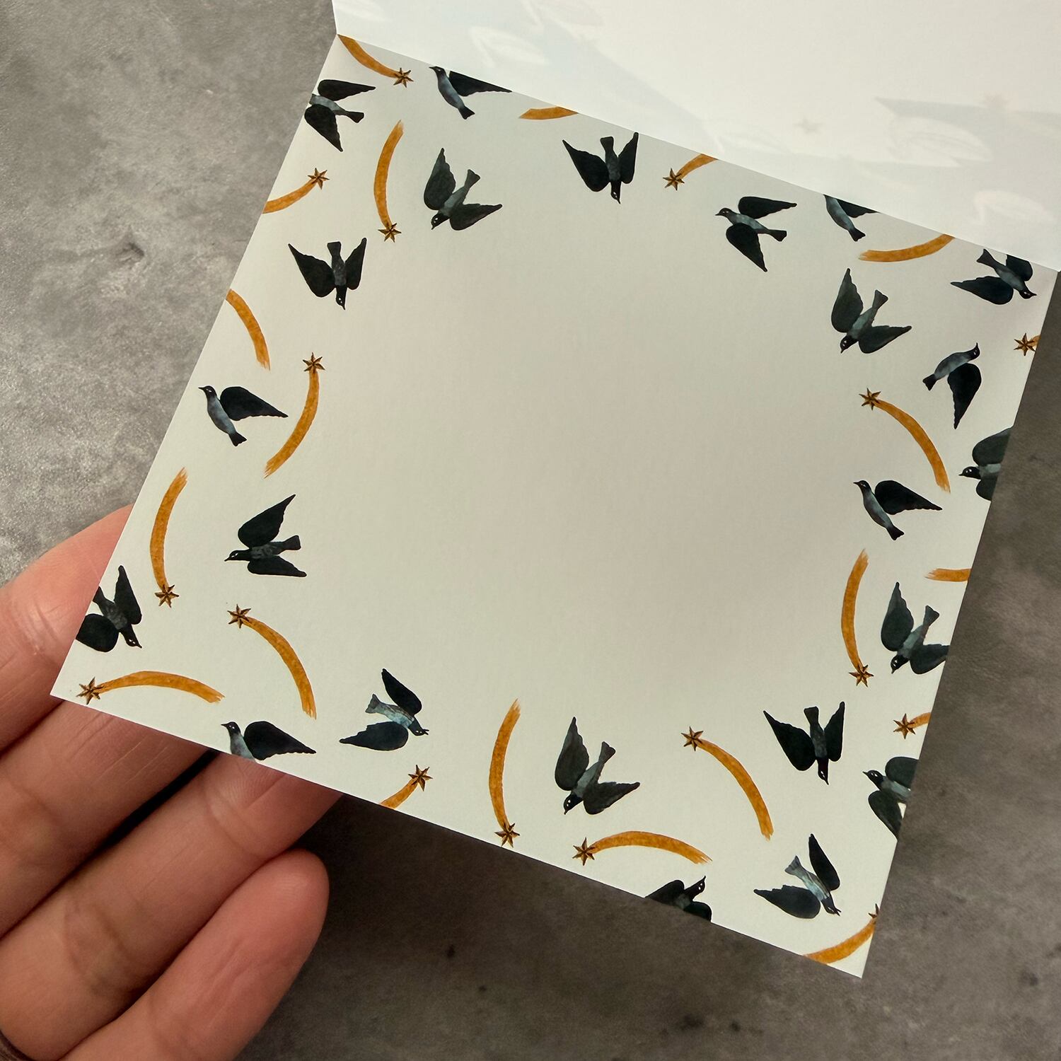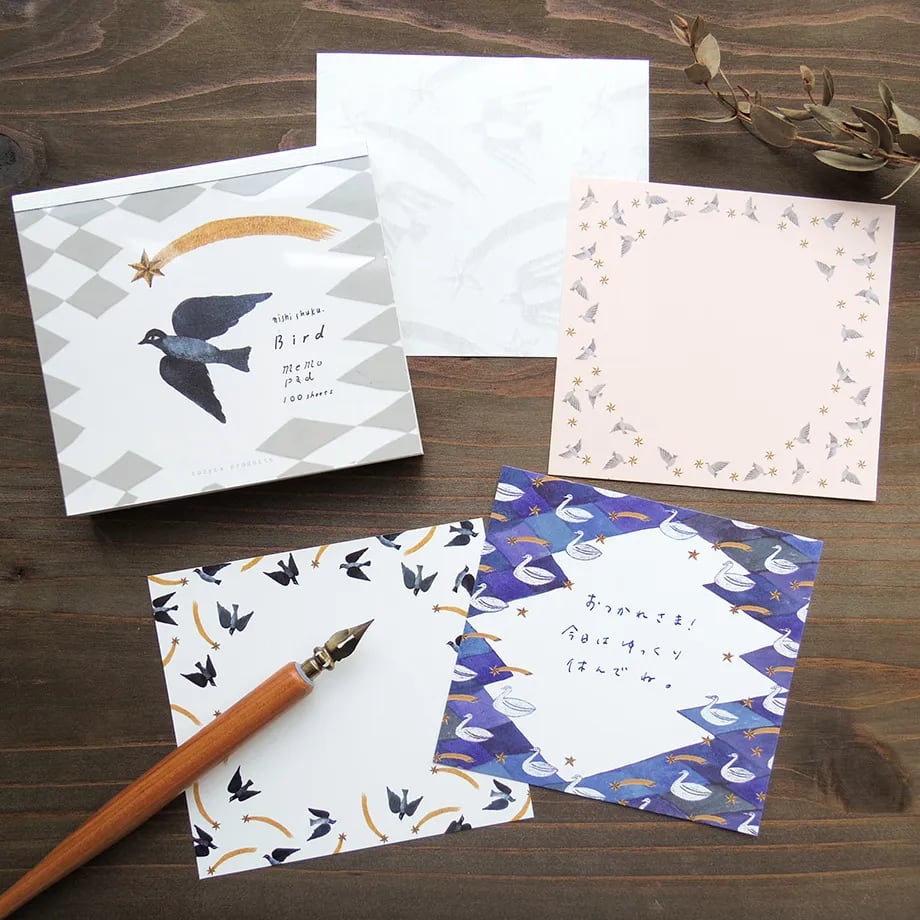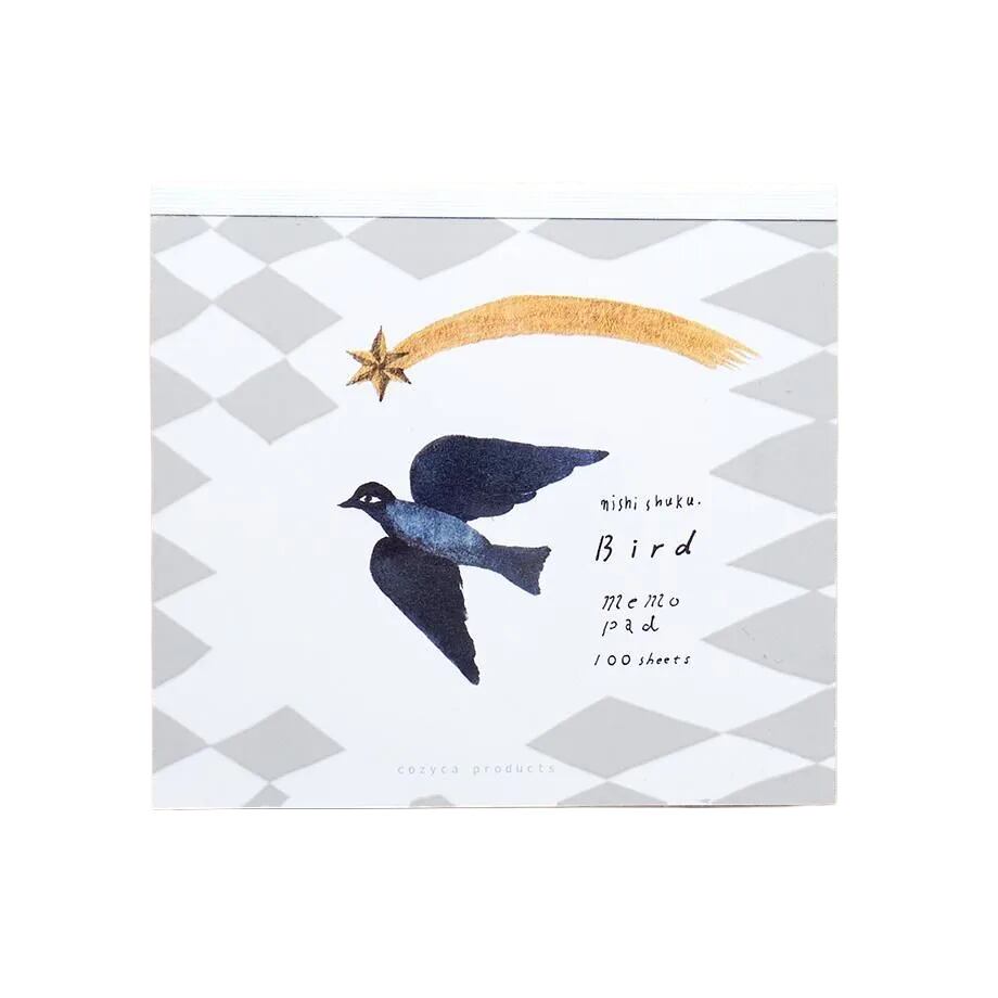 流れ星に願いを込めて。鳥と星が描かれたブロックメモ。