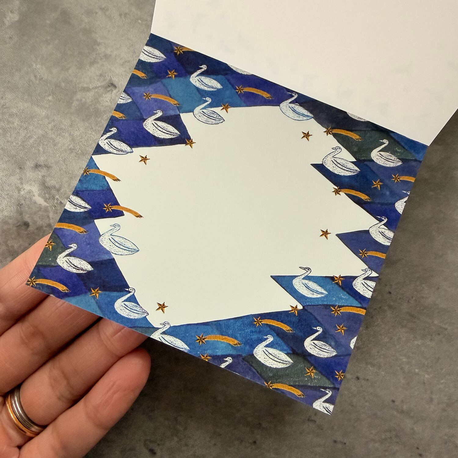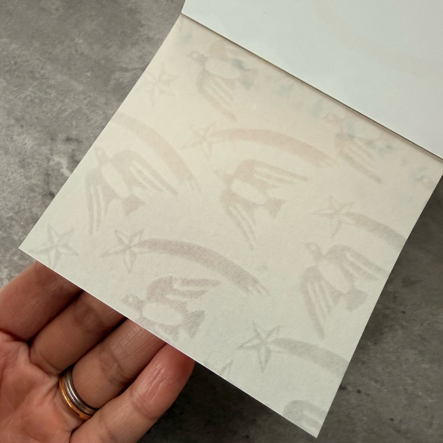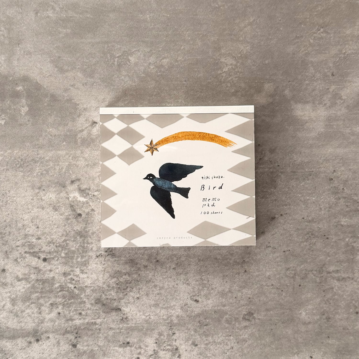 流れ星に願いを込めて。鳥と星が描かれたブロックメモ。