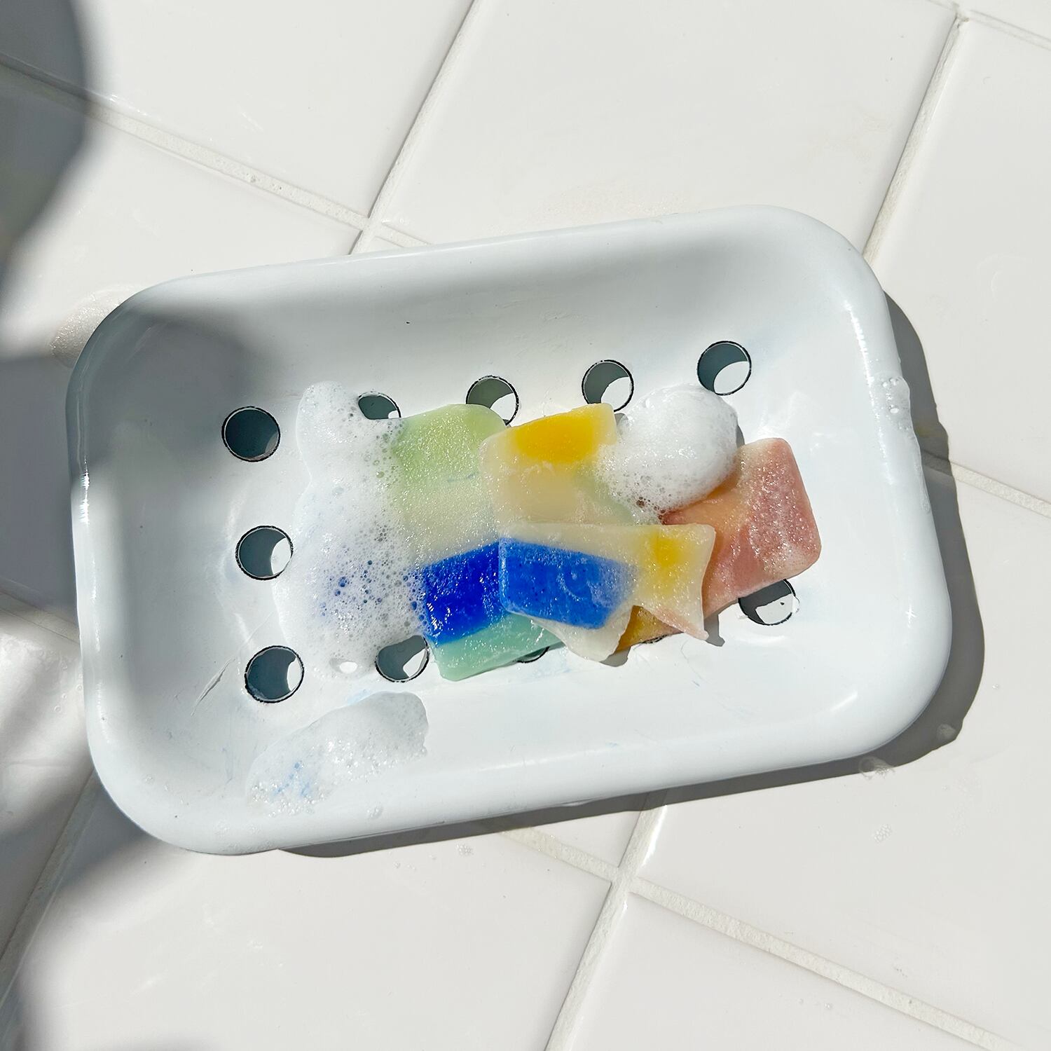4.ご使用後は水切れの良いソープディッシュやトレイに置き、水気をよく切るようにすると溶けにくくなります。